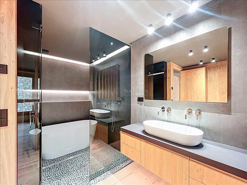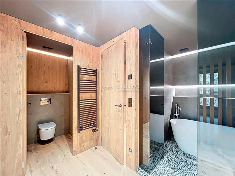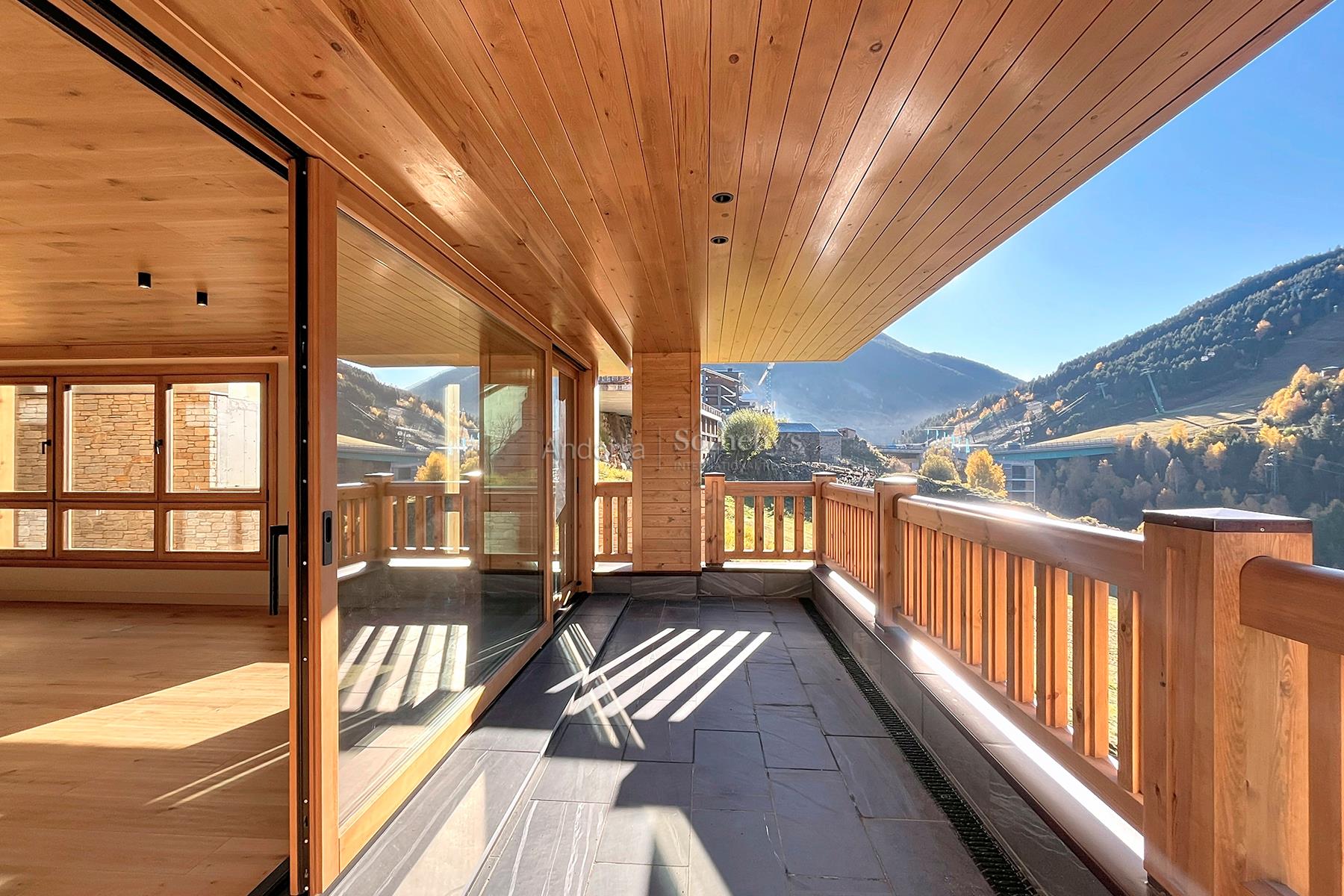Bienvenidos a un auténtico refugio de lujo en el corazón de los imponentes Pirineos, a pocos pasos de las impresionantes pistas de esquí del encantador pueblo de Soldeu. Este exclusivo apartamento ofrece una experiencia inigualable, donde la naturaleza se combina con un diseño contemporáneo, creando el espacio perfecto para quienes buscan serenidad y sofisticación. Con una superficie de 120 m² meticulosamente diseñada, esta propiedad destaca por su estructura que respira naturaleza, utilizando madera de pino autóctono y piedra local que se integran armoniosamente en el paisaje circundante. La cocina de concepto abierto se conecta con un salón espacioso, fomentando la creación de momentos memorables en un ambiente acogedor y elegante. Este apartamento cuenta con dos habitaciones, incluyendo una suite principal y una habitación doble, así como dos baños completos (uno de ellos en la suite). Cada rincón ha sido cuidadosamente diseñado para garantizar la máxima comodidad y funcionalidad. Con la terraza de 9 m², los residentes pueden deleitarse con las espectaculares vistas a las pistas de esquí de Grandvalira y disfrutar de la belleza en todas las estaciones del año. Los amplios ventanales, estratégicamente orientados, permiten que la luz natural inunde el espacio, sumergiendo cada estancia en la calma y la majestuosidad de las cumbres nevadas. Además, este magnífico apartamento incluye una plaza de aparcamiento privada con capacidad para dos vehículos, brindando comodidad y fácil acceso en todo momento. Vive la magia de este espacio único, donde la naturaleza no solo se contempla sino que se siente y se celebra. Una lugar excepcional para quienes desean fusionarse con la esencia pura de la vida en el corazón de las montañas andorranas.Características