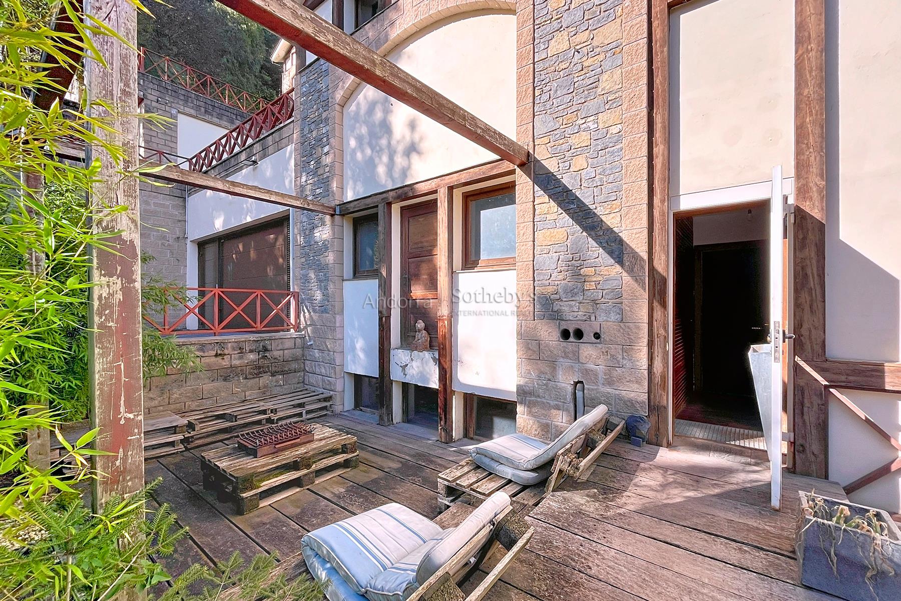 Descubre esta impresionante casa ubicada en La Massana en una parcela de 400 m² que combina diseño moderno, confort y estilo zen. Con una superficie total de 390 m² distribuidos en tres plantas, esta propiedad ofrece espacios amplios y muy bien acabados, perfectos para quienes buscan calidad de vida y privacidad. Distribución y características principales La planta superior de 133 m² cuenta con un gran salón con chimenea central y doble altura. La cocina de grandes dimensiones con estilo industrial tiene acceso directo a una terraza ajardinada orientada al sur, ideal para momentos de calma y disfrute. Debajo de esta, por el jardín y la entrada desde la calle, de 133 m², encontramos un dormitorio principal con vestidor, baño privado, amplia ducha y jacuzzi para relajarse. También cuenta con una zona de aparcamiento privado con capacidad para dos coches. Además, hay un espacio para la caldera y el depósito de agua. La planta inferior a esta, de 124 m², incluye dos dormitorios con acceso a los jardines, dos baños completos y una amplia sala polivalente con grandes ventanas que miran hacia el jardín lateral. Esta sala es ideal para deportes, estudios o espacios de reunión. Espacios exteriores Los jardines de 252 m² que rodean la casa están rehabilitados siguiendo la estética zen japonesa conocida como Kare Sandui, creando un ambiente de calma y armonía. Los jardines comparten espacios con dos terrazas-jardín comunitarias en el lado sur, que permiten disfrutar del sol y la naturaleza. Otros detalles destacados La casa ha sido reformada con aislamiento térmico que incluye laminados Tecnol y cerramientos de Placo, así como suelos de madera que aportan calidez, aunque necesitaría una renovación en ciertas zonas. El sistema de calefacción combina radiadores y suelo radiante en el pasillo y dormitorio principal, ofreciendo una distribución cómoda y eficiente. Este hogar combina modernidad y tranquilidad en un entorno natural envidiable en La Massana, haciendo que sea la opción ideal para familias que buscan calidad de vida en un ambiente acogedor y exclusivo.Características