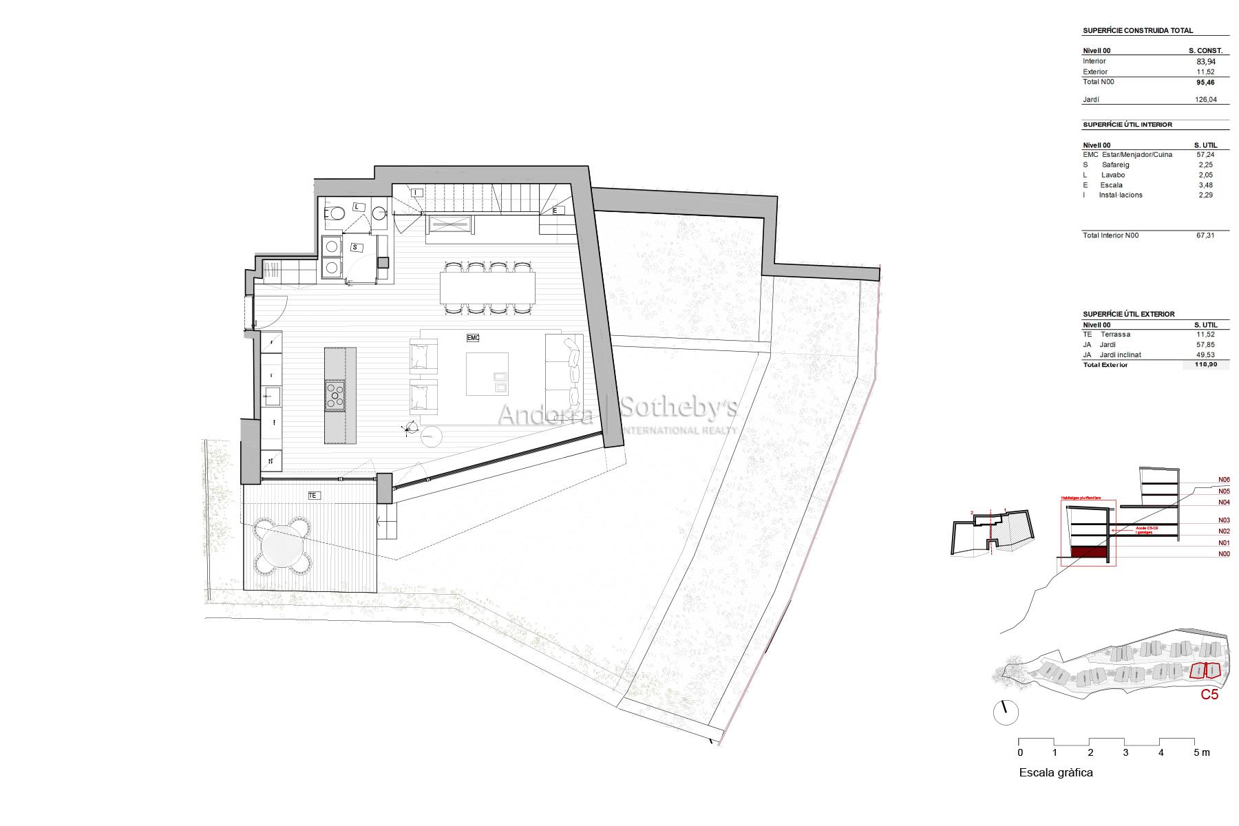VIVIENDA 5.1 Bienvenido a su nuevo hogar situado en un entorno natural privilegiado en Els Vilars, Escaldes, donde la elegancia se fusiona con la belleza del paisaje andorrano. Esta espectacular propiedad, ubicada a pocos minutos del vibrante centro de Andorra la Vella, ofrece un acceso inmediato a una amplia gama de servicios, comercios y áreas de ocio. Con un diseño pensado para la sostenibilidad, este dúplex destaca por sus generosas aperturas, que permiten la entrada de luz natural, creando así un ambiente de armonía y serenidad. Las impresionantes vistas a las montañas y a Escaldes, junto con una orientación sur que asegura una excelente iluminación a lo largo del día, hacen de este hogar un verdadero oasis de tranquilidad. Esta propiedad ocupa la planta baja y la primera planta. Incluye tres cómodos dormitorios en suite, un baño de invitados, un lavadero y un amplio jardín con acceso directo desde la sala de estar y el comedor. La planta baja presenta una sala de estar de grandes dimensiones con chimenea, separada de la cocina con una elegante isla que crea dos zonas distintas en un mismo espacio. En la primera planta, los tres dormitorios en suite ofrecen privacidad y confort. Con un diseño orientado al ahorro energético, esta villa no solo proporciona comodidad, sino que también cuenta con jardines y zonas verdes que fomentan un estilo de vida íntimo y placentero. Descubra la verdadera esencia de la vida andorrana en este dúplex único, donde cada detalle ha sido concebido para garantizar el máximo confort y una vida plena de armonía y belleza.Características