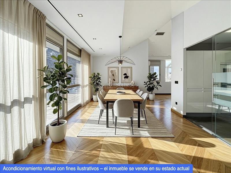 Se presenta este ático singular de 215,05 m², ubicado en pleno centro de Escaldes-Engordany, que ocupa la totalidad de la planta, ofreciendo un nivel excepcional de privacidad, amplitud y luminosidad. Gracias a sus cuatro orientaciones, con clara predominancia sur, la propiedad disfruta de una extraordinaria entrada de luz natural durante todo el día. La zona de noche se distribuye en cuatro elegantes dormitorios, tres de ellos en suite con baño completo, concebidos para garantizar el máximo confort. El cuarto dormitorio dispone de acceso inmediato a un baño completo independiente. Adicionalmente, la vivienda cuenta con un lavabo de cortesía. La zona de día se articula en torno a un sofisticado salón-comedor semiabierto, conectado a la cocina mediante una puerta corredera acristalada de diseño, que permite integrar ambos espacios o independizarlos, configurando una cocina tipo office de alta funcionalidad y estética contemporánea. La propiedad dispone de dos exclusivas terrazas privadas: una de 21,21 m² vinculada a la zona de salón-comedor y cocina, y una impresionante terraza frontal de 39 m² con orientación sur, ideal para disfrutar de momentos al aire libre con total privacidad. Entre sus características más distinguidas destaca el acceso directo mediante ascensor privado al interior de la vivienda, tanto desde el vestíbulo principal como desde el aparcamiento, mediante sistema de acceso con chip, aportando un elevado nivel de seguridad, discreción y confort. La propiedad se completa con dos amplias plazas de aparcamiento, incluidas. Una residencia única y exclusiva, que combina ubicación prime, diseño, privacidad y prestaciones de alto nivel, pensada para quienes buscan una vivienda de representación en una de las zonas más prestigiosas de Andorra.Características