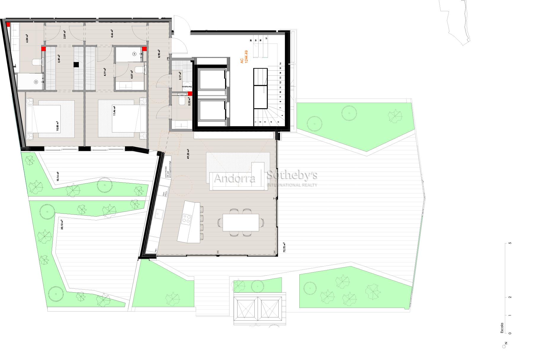 Ce magnifique Penthouse nouvellement construit, en construction, est situé à côté de la principale avenue commerciale de La Massana, dans un quartier résidentiel familial près de la piscine commune et des courts de tennis, très calme et parfaitement relié. Il dispose de tous les services nécessaires et se trouve à seulement 400 mètres du téléphérique qui permet d'accéder aux pistes de ski du domaine de Pal-Arinsal. L'appartement dispose de 251,59m² répartis dans un grand séjour avec accès à une double terrasse de 118,33m², une grande cuisine, intégrée à la salle à manger, équipée d'électroménagers haut de gamme. Dans la zone de repos, il y a 3 chambres, l'une d'elles est une suite parentale avec dressing, la seconde est une chambre double et l'autre est une grande suite junior. Toutes les chambres ont des armoires encastrées. Il y a aussi 1 salle de bain complète et un service de courtoisie. La propriété dispose de 3 places de parking dans le même bâtiment. Orienté à l'est et au sud à l'arrière, l'appartement bénéficie du soleil dès les premières heures de la journée jusqu'à la fin de l'après-midi et offre une vue sur le Camí Ral, avec la rivière et la vallée de Massana. Cet appartement exclusif, parfaitement situé, est un excellent investissement pour une famille à la recherche d'une résidence de prestige au centre d'une ville au dynamisme de La Massana et souhaitant profiter de son large éventail d'activités avec tout l'espace et les commodités nécessaires.Caractéristiques