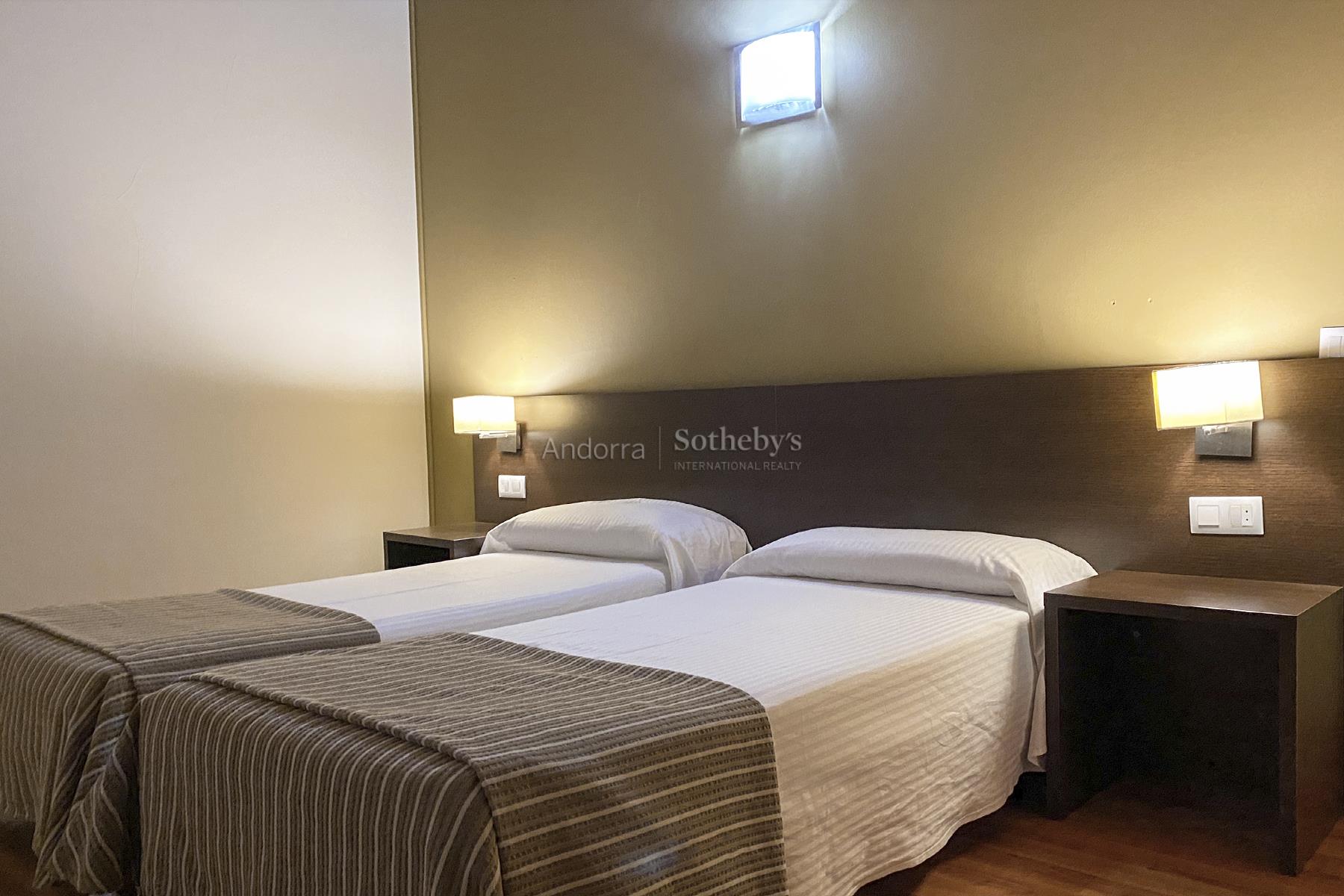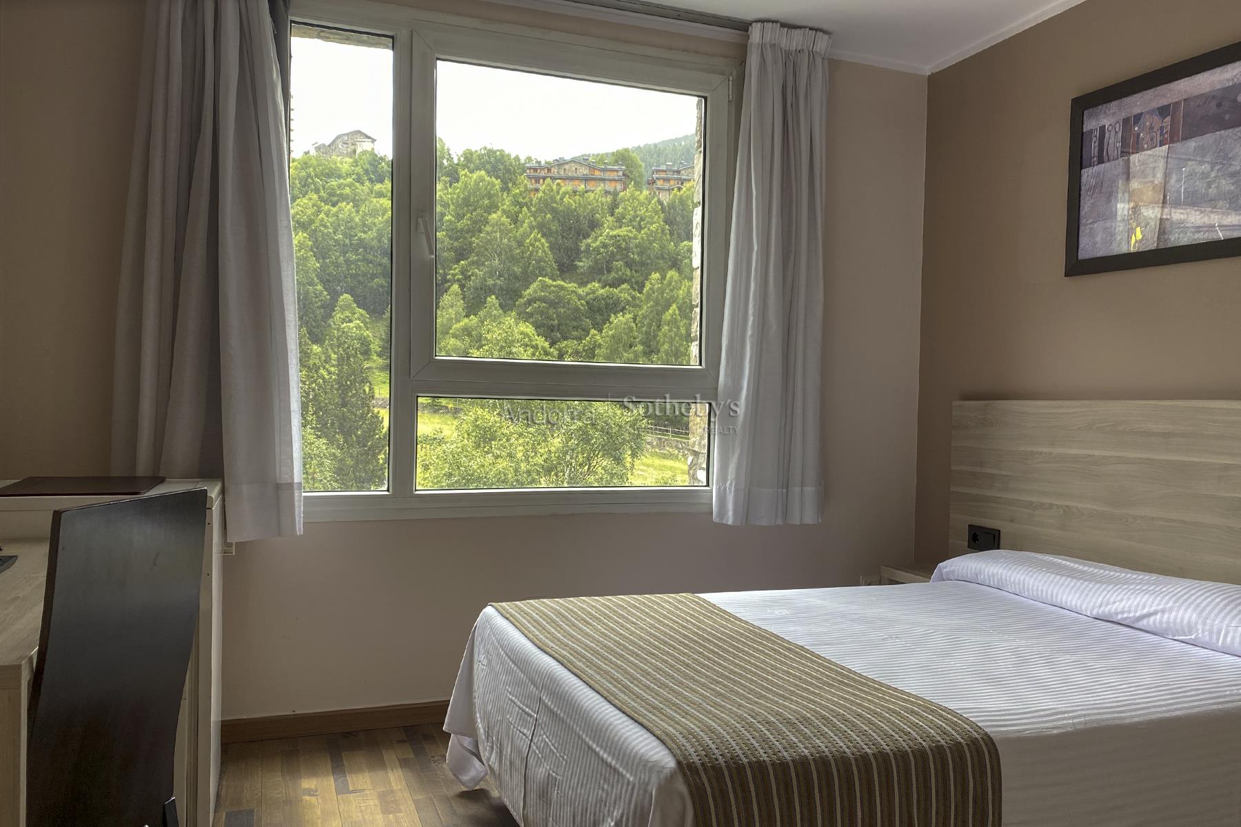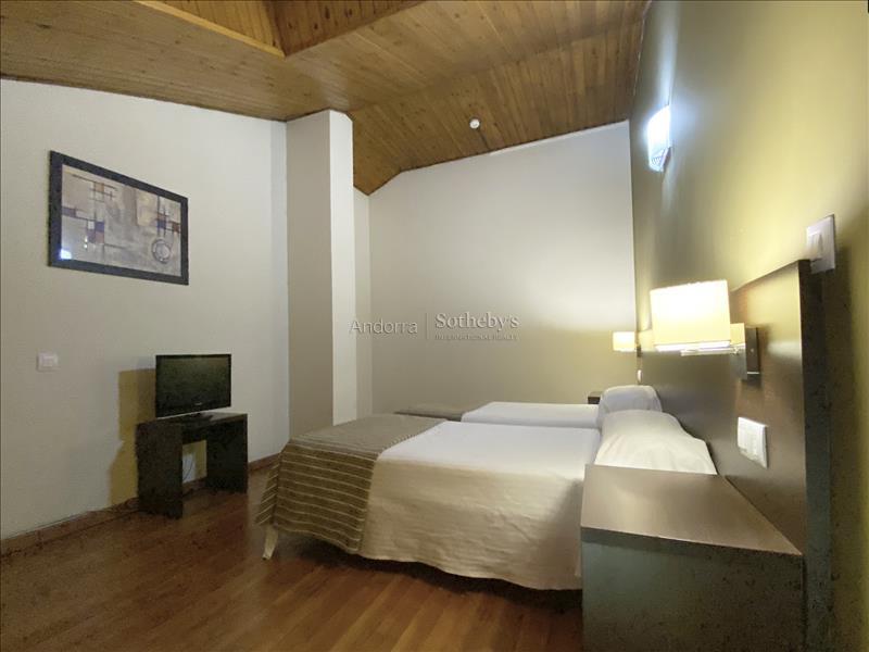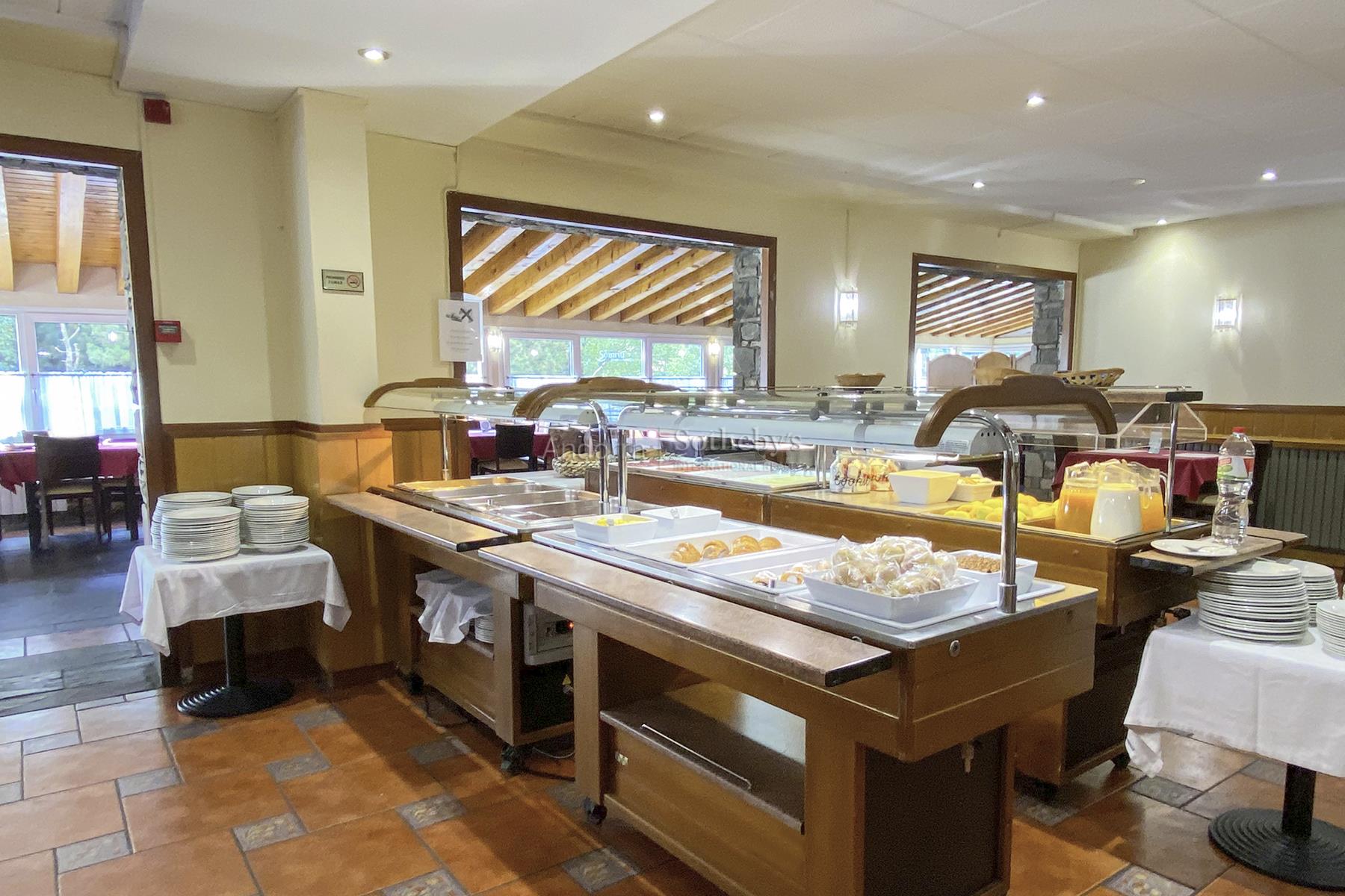 En plein centre du quartier idyllique d'Incles, se trouve ce bâtiment qui fonctionne actuellement comme un hôtel-restaurant pour faire du shopping. À 1,5 km se trouvent les pistes de Soldeu et un peu plus haut, les pistes de Grau Roig, toutes deux situées dans le domaine skiable de Grandavalira, même si elles disposent d'une excellente station pour débutants au pied des pistes. De plus, la ville de Soldeu et Canillo est également disponible avec tous les services à proximité. Ce complexe résidentiel, sur un terrain de 1143 m2, avec un total de 4025 m2 construits, répartis sur 4 étages avec chambres, rez-de-chaussée et 2 sous-sols, se compose de 13 chambres pour 4 personnes par étage, réparties entre les étages 1 à 4. d'environ 453 m2 chacun. Au rez-de-chaussée : l'accueil, la cafétéria, d'une capacité de 40 personnes ; le restaurant d'une capacité de 140 personnes ; la terrasse de 80 m2, une salle polyvalente d'une capacité de 30 personnes, la cuisine et les salles de bains. Étage -1 : d'environ 685 m2 il y a 14 places de parking, 9 débarras, buanderie, local technique et espace jacuzzi et sauna. Au -2 étage : parking pour 21 voitures, 18 débarras, entrepôt et local technique. La décoration de l'hôtel de montagne est visible dans tous les coins grâce à la variété des détails qui traduisent l'emplacement alpin. L'orientation sud-est dont bénéficie le bâtiment permet d'apprécier le soleil de midi à l'après-midi et des vues exceptionnelles sur la vallée de Canillo et la ville de Soldeu. Hôtel-Restaurant parfait pour investir dans l’une des zones les plus fréquentées d’Andorre, aussi bien en hiver qu’en été.