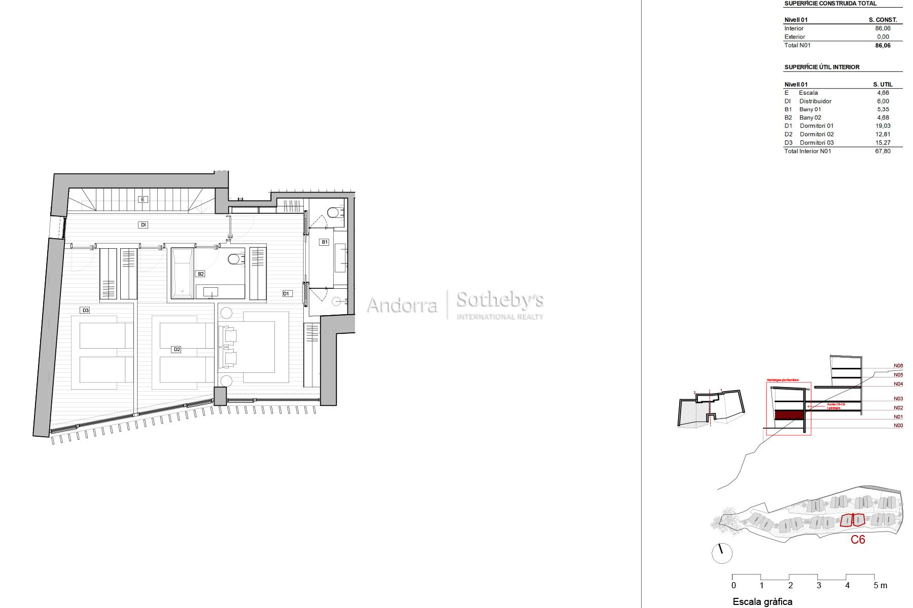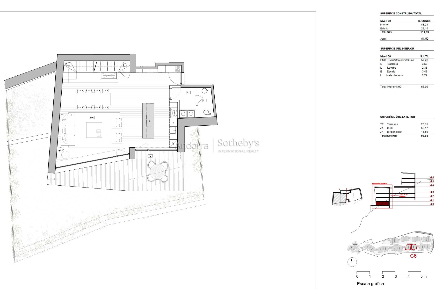VIVIENDA 6.2 Bienvenido a su nuevo hogar situado en un entorno natural privilegiado en Els Vilars, Escaldes, donde la elegancia se fusiona con la belleza del paisaje andorrano. Esta propiedad espectacular, ubicada a pocos minutos del vibrante centro de Andorra la Vella, ofrece acceso inmediato a una amplia gama de servicios, comercios y zonas de ocio. Con un diseño pensado para la sostenibilidad, este dúplex destaca por sus generosas aberturas, que permiten la entrada de luz natural, creando un ambiente de armonía y serenidad. Las impresionantes vistas a las montañas y a Escaldes, junto con una orientación sur que garantiza una excelente iluminación durante todo el día, hacen de esta vivienda un verdadero oasis de paz. Esta propiedad ocupa la planta baja y la primera planta. Incluye tres cómodas habitaciones, una en suite, un baño completo independiente, un servicio para invitados, una lavadora y un amplio jardín con acceso directo desde la sala de estar y el comedor. La planta baja cuenta con una sala de estar con chimenea de gran tamaño, separada de la cocina por una elegante isla que crea dos zonas distintas en un solo espacio. En la primera planta, las tres habitaciones ofrecen privacidad y confort. Con un diseño enfocado en el ahorro energético, esta villa no solo proporciona comodidad, sino que también cuenta con jardines y zonas verdes que fomentan un estilo de vida íntimo y placentero. Descubra la verdadera esencia de la vida andorrana en este dúplex único, donde cada detalle ha sido pensado para garantizar el máximo confort y una vida llena de armonía y belleza.Características