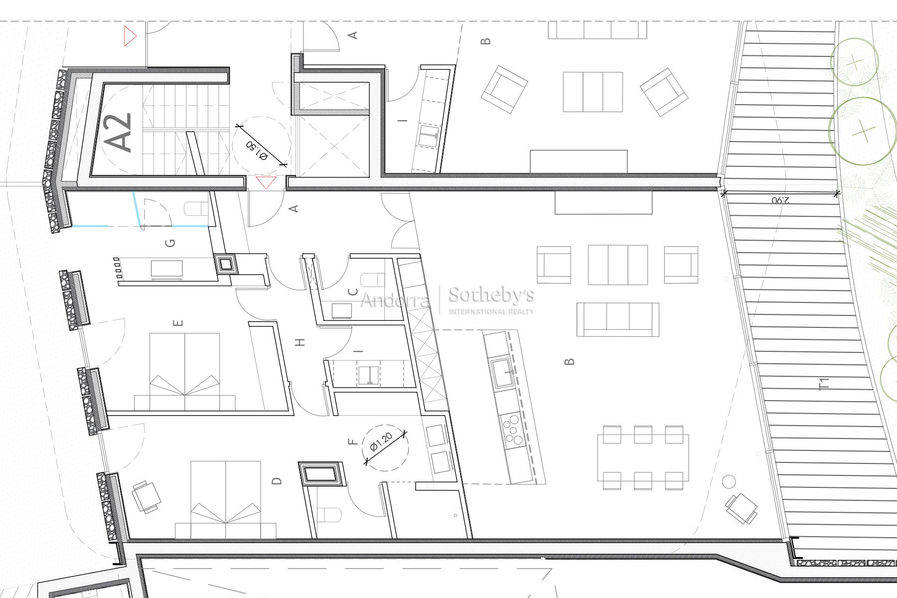 Descubre un nuevo apartamento de lujo situado en el corazón de la naturaleza, donde la exclusividad y la comodidad se fusionan perfectamente. Esta vivienda de nueva construcción de 168,6 m², en una de las zonas más privilegiadas de la parroquia de Ordino, es ideal tanto como residencia permanente como segundo hogar. El apartamento cuenta con dos dormitorios en suite, cada uno con su propio baño, así como un lavabo adicional y un práctico lavadero. Su elegante terraza de 24 m² ofrece un espacio ideal para disfrutar del tranquilo entorno, perfectamente equipada para momentos de relajación tanto interiores como exteriores. Características destacadas: Garático privado con capacidad para 2 vehículos Sistema de climatización y calefacción con suelo radiante, garantizando la máxima comodidad durante todo el año Altos estándares de construcción con elementos de alta gama, incluyendo vidrios triples para un mejor aislamiento Espacios comunes excepcionales, incluyendo una zona de fitness equipada, spa comunitario con piscinas y jacuzzi, así como áreas de ocio y esparcimiento Domótica integrada para un control fácil e intuitivo de las instalaciones Seguridad y confort gracias a la puerta de entrada de seguridad y las puertas correderas que añaden un toque moderno Además, su ubicación estratégica permite acceder en pocos minutos al telecabina de Vallnord, ideal para los amantes del esquí y las actividades al aire libre. La proximidad al transporte público y a las comodidades locales hace de este apartamento una oportunidad única en el Principado de Andorra. No dejes escapar la oportunidad de vivir en un ambiente exclusivo rodeado de naturaleza. ¡Contáctanos para más información sobre este apartamento único en Ordino! Arquitectos: Rafael de La-Hoz, Ricard de Deus - COAA Nº90.Características