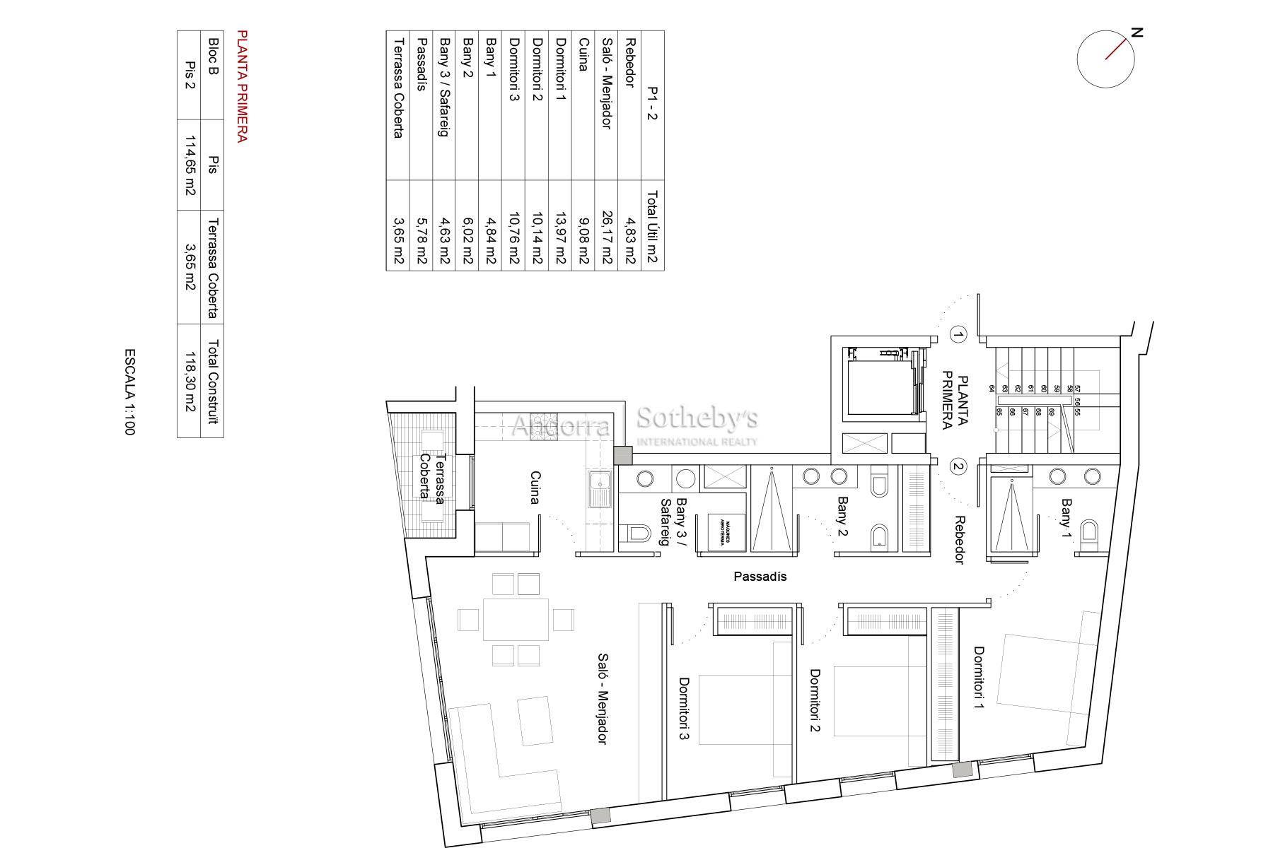 Esta magnífica vivienda se encuentra ubicada en un nuevo complejo residencial en construcción en Escaldes-Engordany, Residencial Marió, a pocos minutos del centro comercial y financiero del país. Con una superficie de 118 m², esta propiedad moderna cuenta con una terraza de 5,66 m², ofreciendo un ambiente luminoso y soleado gracias a su orientación óptima. La vivienda consta de 3 habitaciones dobles, 1 de ellas en suite. Además del baño de la suite, dispone de 1 baño completo independiente. Disfruta de un amplio salón comedor y una cocina independiente, ambos conectados con la terraza, creando un espacio perfecto para el entretenimiento. Entre las características destacadas se incluyen calidades de alta gama, calefacción por aerotermia y bomba de calor, persianas de aluminio motorizadas, iluminación LED, suelo radiante, entre otras. Asimismo, hay plazas de aparcamiento y trasteros disponibles según tus necesidades, no incluidos en el precio de la vivienda. La entrega de esta propiedad está prevista para abril de 2025, brindándote la oportunidad de asegurar tu hogar en este exclusivo complejo residencial.Características