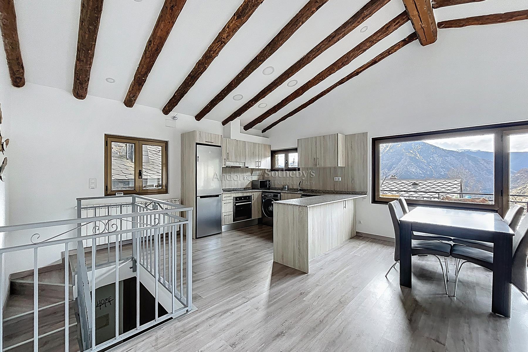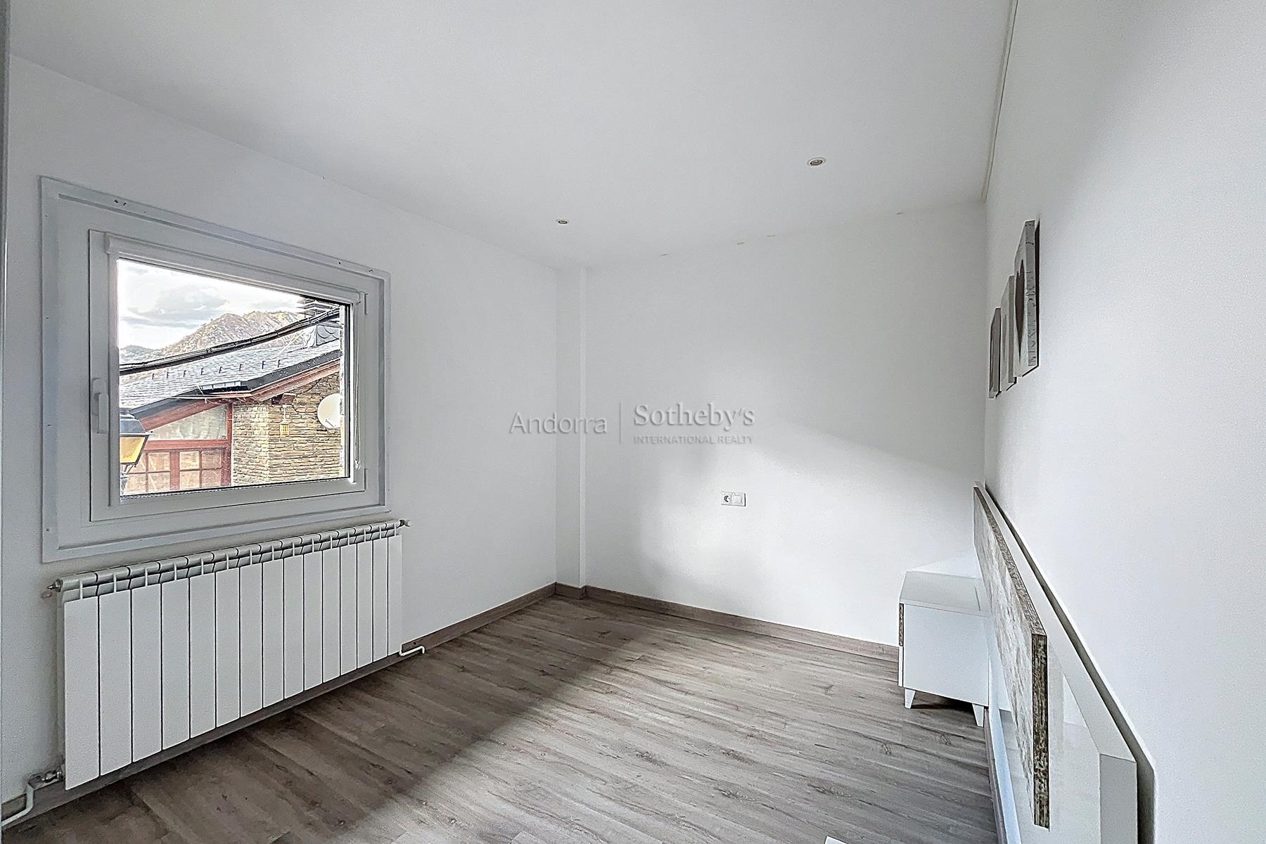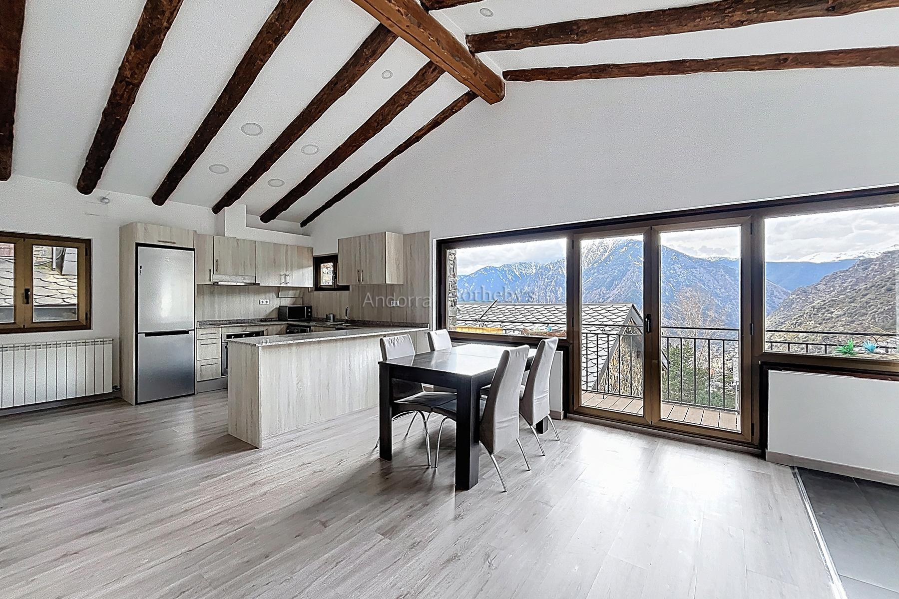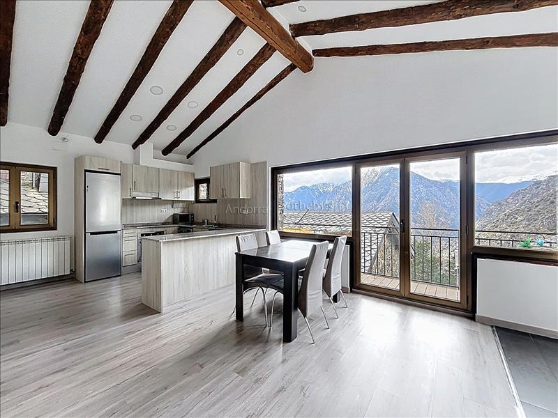 Esta propiedad se encuentra en una urbanización muy tranquila y rodeada de naturaleza, a pocos minutos en coche del centro de Andorra la Vella y Escaldes. La propiedad dispone de 115m2 distribuidos en 2 plantas. En la planta inferior se encuentra la zona de noche, distribuida en 3 dormitorios dobles (uno de ellos en suite) y un segundo baño completo. En la planta superior está la zona de día, compuesta por una cocina abierta y un amplio salón-comedor con salida a una terraza de 9m2 con vistas espectaculares a todo el valle, y mucha luz natural gracias a su orientación. Esta propiedad dispone de trastero en box.Características