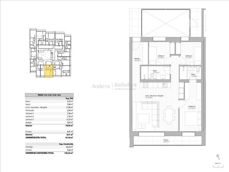 探索這座位於 El Tarter 的宏偉新作品。 該物業面積為 105.64 平方米,提供現代化而寬敞的空間,讓您盡情享受。 廚房與客廳融為一體,營造出舒適實用的氛圍。 從這裡您可以進入 9.42 平方米的迷人露台,欣賞美景。 該住宅設有三間臥室、一間帶步入式衣櫃的精美套房、兩間單人臥室和兩間設施齊全的浴室,非常適合那些尋求舒適和時尚的人士。 建築物設有可停放兩輛車的私人車庫,可提供額外的舒適度,並讓您的車輛免受寒冷和雪的侵襲。 飯店配備高品質設施,包括節能 LED 照明、地暖和優雅的電壁爐。 此外,它還具有家庭自動化功能,可讓您透過智慧型手機輕鬆控制和管理家庭系統。 高品質的電器為您提供非凡的烹飪體驗,而輻射地板和瓷器則增添了一絲溫暖、精緻和耐用的感覺。 社區設有水療中心和社區休閒區,您可以在那裡享受游泳池和按摩浴缸,營造出幸福和放鬆的氛圍。 此外,一個帶有綠地的中央庭院完善了這個環境,提供了一個安靜和自然的空間。 不要錯過住在埃爾塔特這座美妙房產的機會。特征