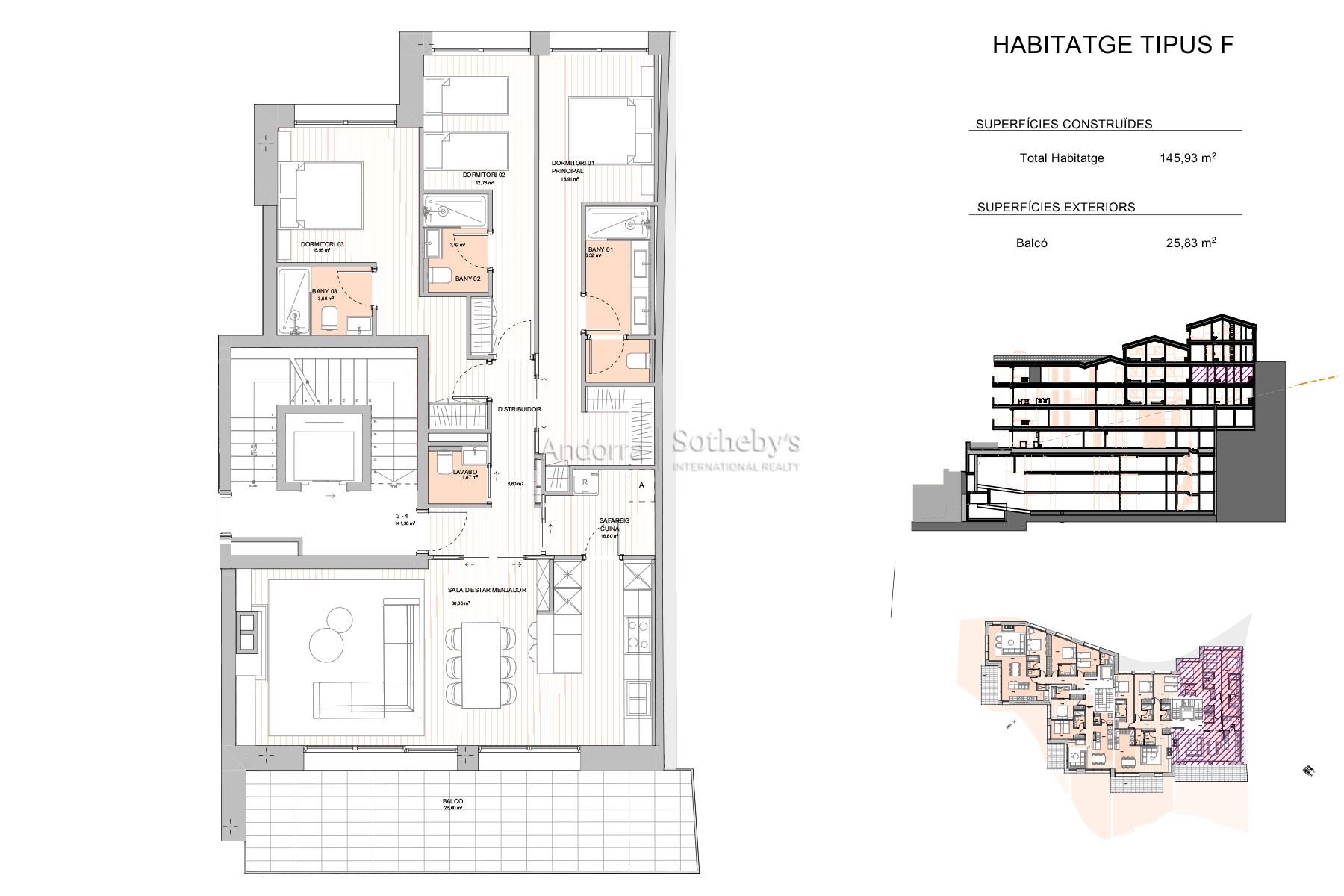 Exclusivo apartamento de obra nueva en venta en Escaldes-Engordany, con una superficie construida de 145,93 m², diseñado para ofrecer confort, luminosidad y elegancia en un entorno residencial tranquilo y bien comunicado. La vivienda cuenta con tres dormitorios en suite, todos con baño completo, y un aseo de cortesía adicional. El salón-comedor con cocina abierta crea un espacio moderno y funcional, destacando por su luz natural y el acceso directo a un balcón de 25,83 m², perfecto para disfrutar del aire libre. La propiedad incluye también una chimenea, ideal para crear un ambiente acogedor en los meses más fríos. Además, dispone de sala de lavandería independiente y acabados contemporáneos, con una distribución cuidadosamente pensada para el máximo confort y privacidad. Plaza de aparcamiento y trastero no incluidos en el precio. El comprador podrá elegir el box según sus necesidades. Una oportunidad excepcional para vivir o invertir en una de las zonas más demandadas de Escaldes-Engordany.Características